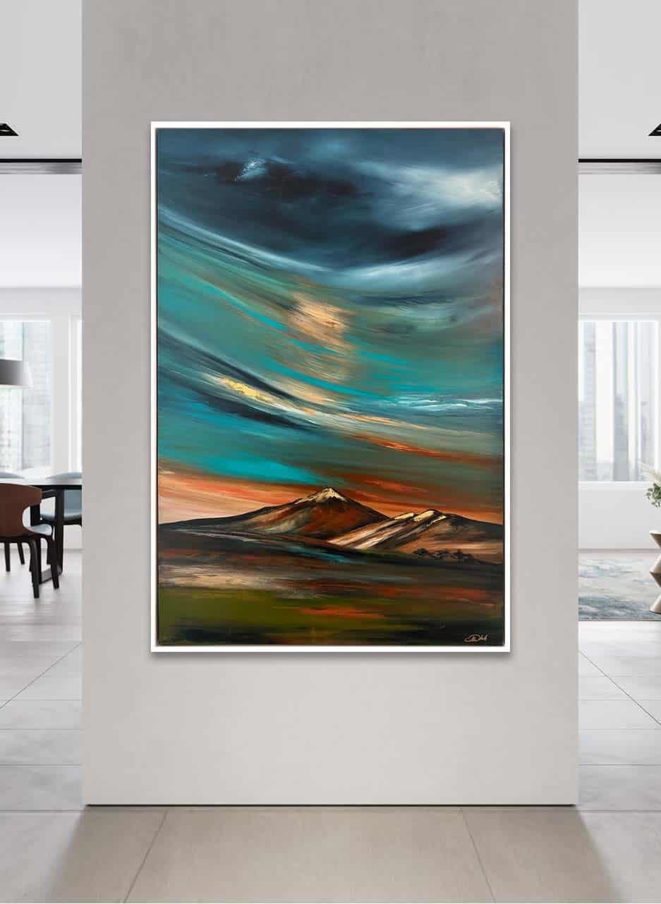 Jill White’s paintings transcend traditional representation with bold lines and abstract forms, providing a fresh perspective that sparks exploration of new visual realms. Through vibrant colours and dynamic compositions, she captivates viewers, immersing them in a captivating world where emotions come alive and imagination takes flight.
