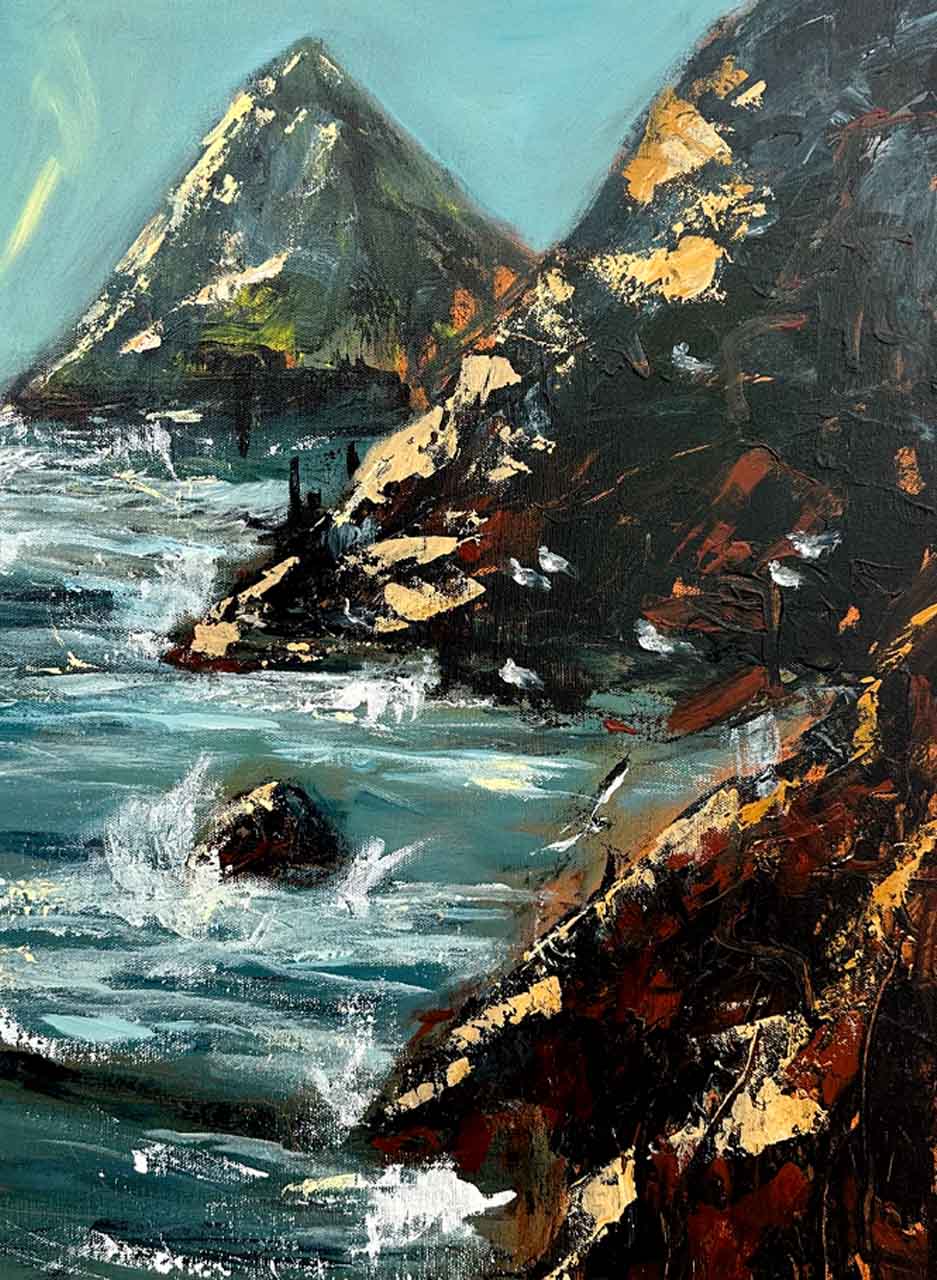 Deb Williams is a mixed media artist known for her vibrant and expressive works. She paints on canvas, wood, and paper, using paint, crayon, ink, and wax to create layered, energetic pieces. Her work is filled with colour, movement, and a strong sense of joy.