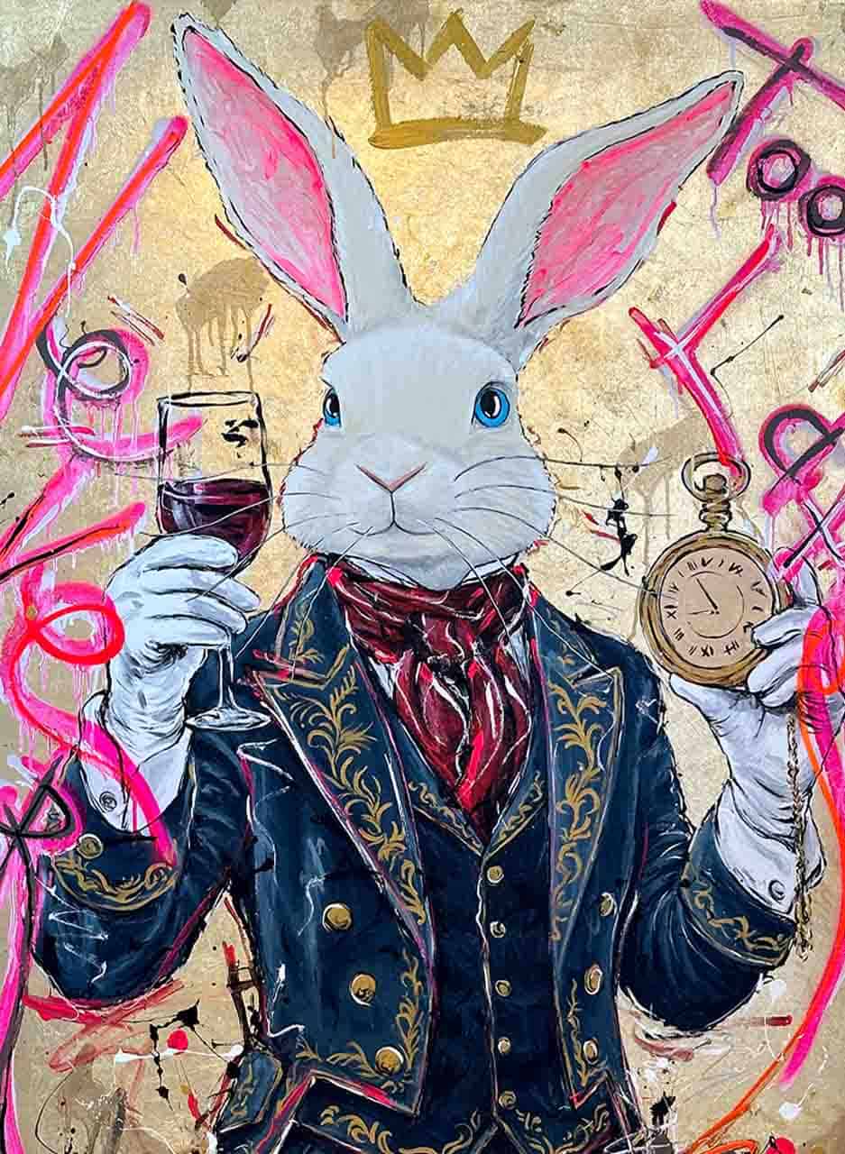 The Space Cowboy’s art pulses with electrifying colours and energy, blending bold brushstrokes with sharp lines and immersive Augmented Reality experiences. From mythological plays to personal reflections, his work urges deeper self-reflection and explores universal connections.