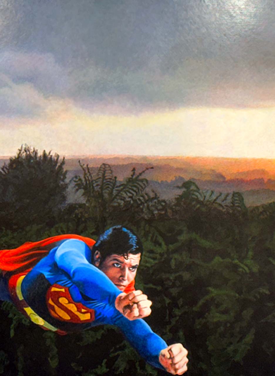 Artist Graham Kirk, born in Hawera, has gained national and international acclaim for his “Superheroes in New Zealand” series, featuring finely painted landscapes with characters from DC Comics. Kirk uses his photos as references and creates a unique painted stipple effect with cottonwool buds, and his artwork is exhibited widely across New Zealand.