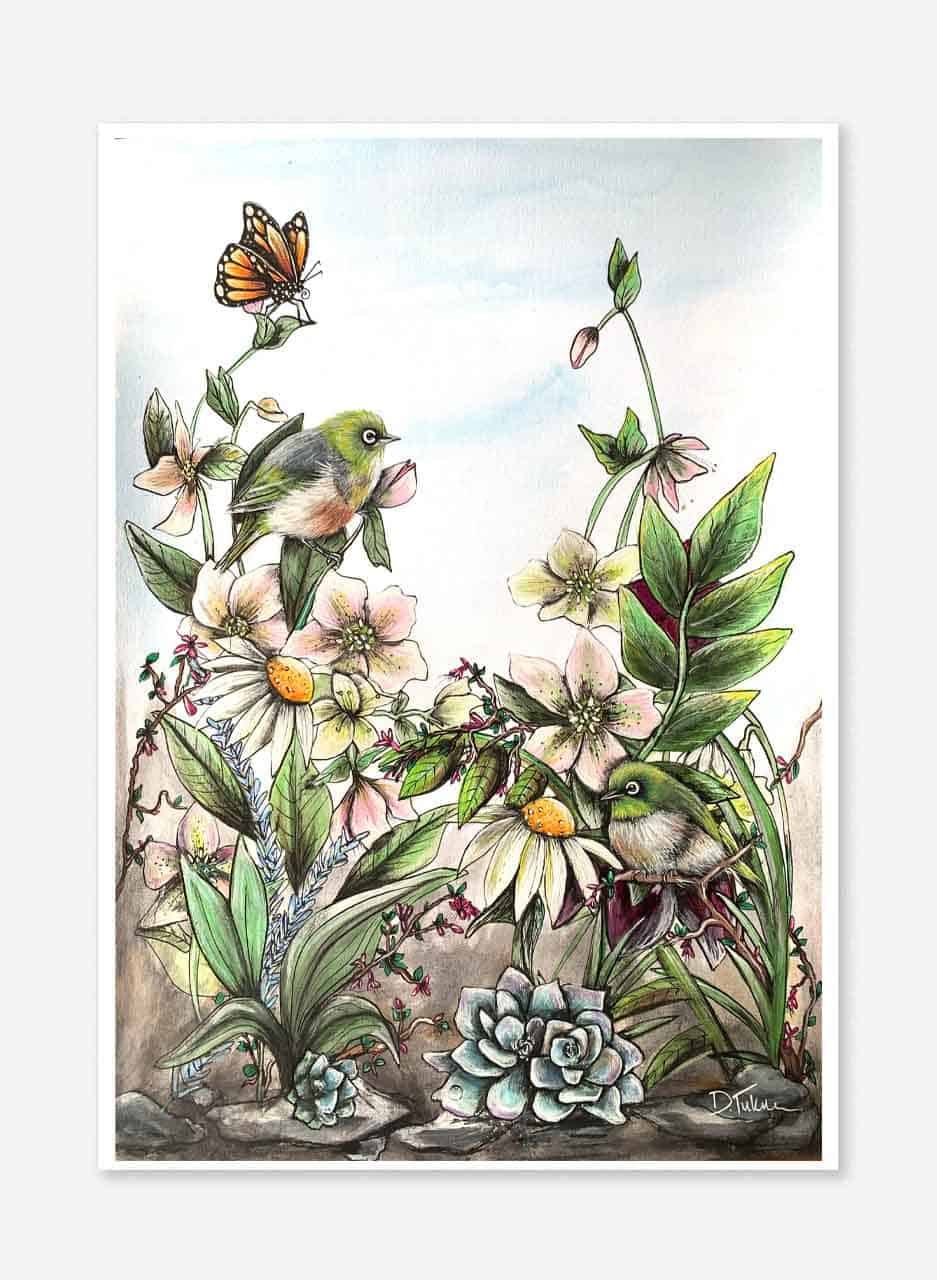 My art is inspired by my childhood memories, my love for the New Zealand environment, and the truly unique creatures that dwell within it. I am a proud Kiwi, and this is reflected in my art! It’s quirky, and original.