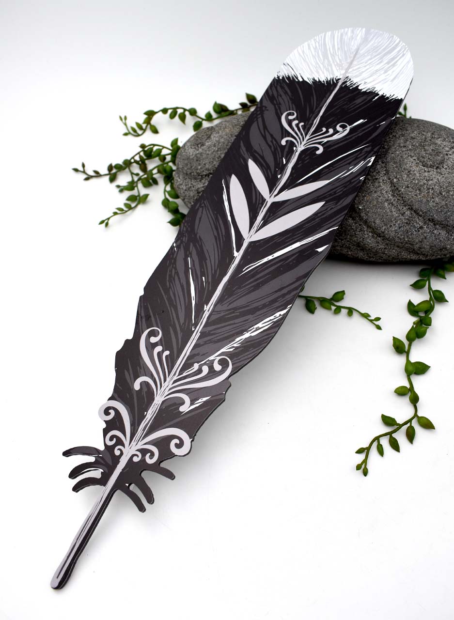 Each huia feather is sold individually and is suitable for both indoor and outdoor display. For outdoor use, we recommend placing it under cover and out of direct sunlight to help preserve the crisp printed detail over time.