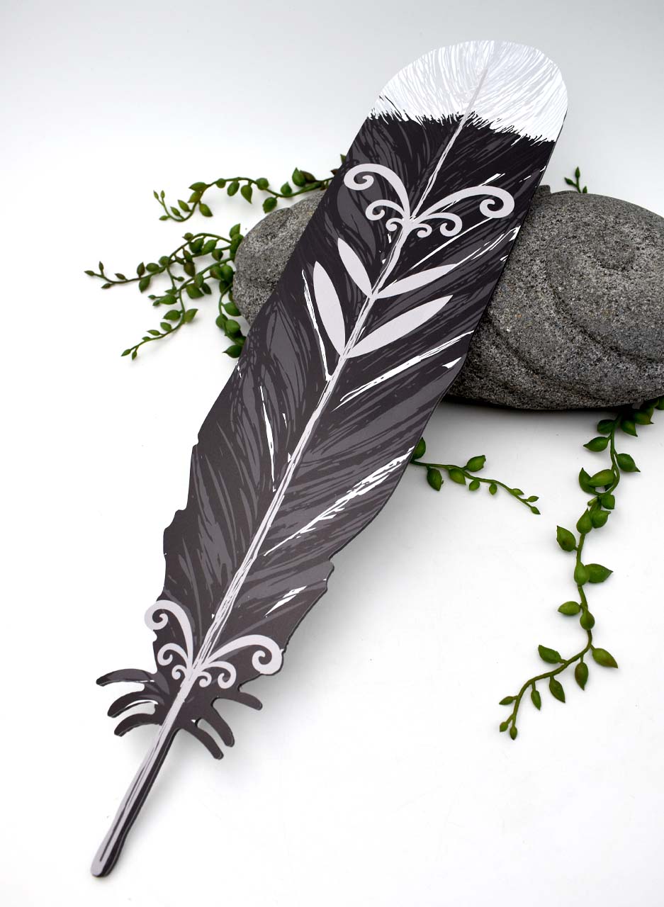 Each huia feather is sold individually and is suitable for both indoor and outdoor display. For outdoor use, we recommend placing it under cover and out of direct sunlight to help preserve the crisp printed detail over time.
